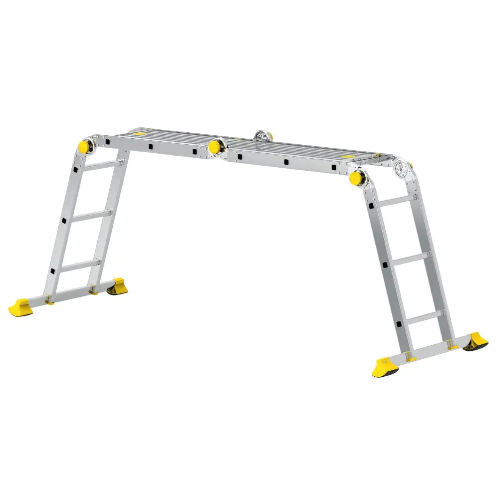 Flera olika användningar i en fällbar kompakt design. Det är 3 stegar i 1 eftersom den kan användas som plattform, fristående- eller anliggande stege. En plattform ingår för att stå på och ger en stor arbetsyta. Det ingår även 2 st stegfötter för bättre säkerhet när du arbetar. En testlast på 350 kg och leder testade för 10 000 ger extra säkerhet. Godkänd att stå på i plattformsläge enligt de strängare svenska kraven i EN 131-4.