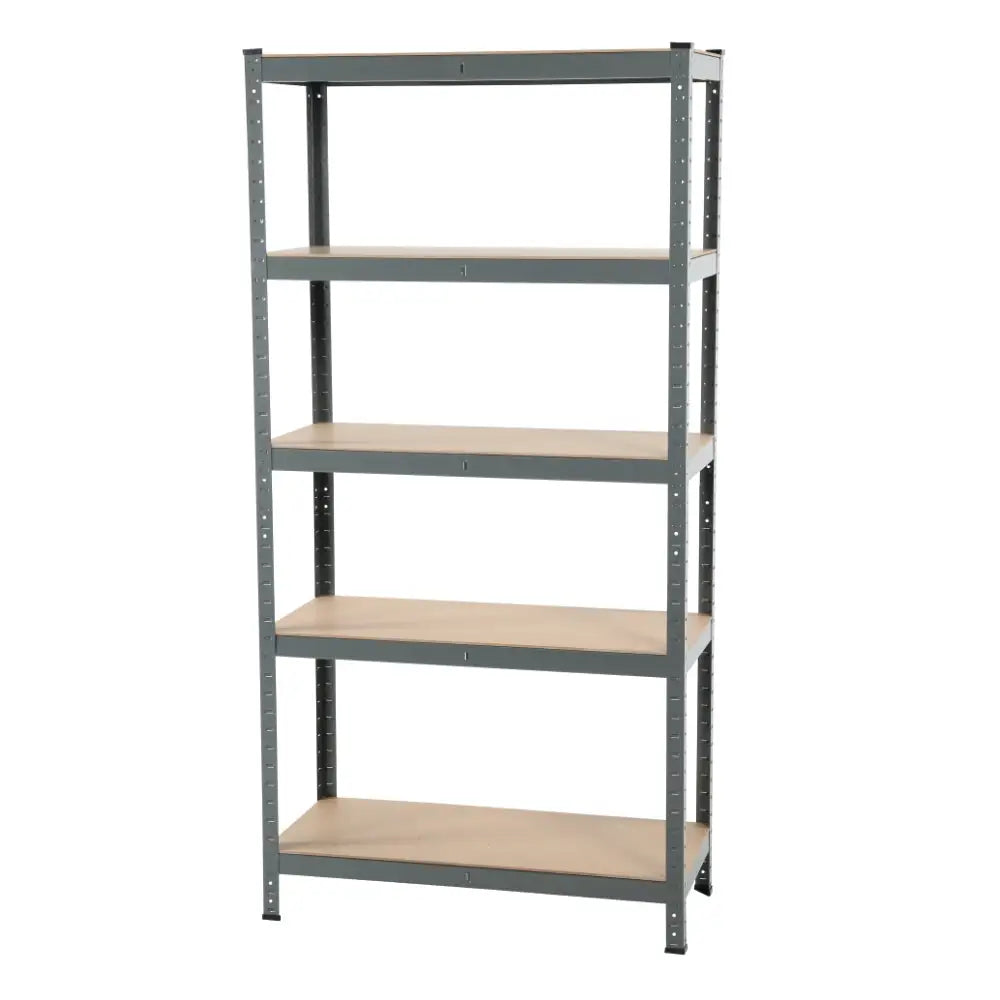Kraftig hylla i stål med hyllplan i trä, passar för alla ändamål på lager, verkstad, butik eller annat.