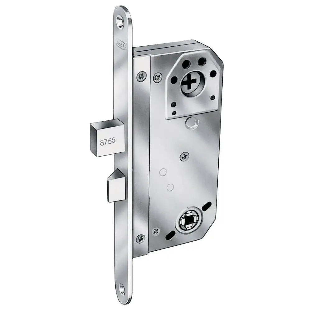 Låshus för ytter- och innerdörrar. Regeln låses och öppnas med nyckel eller vred. Regeln är tvångsstyrd. Vändbar tryckesfall. Mikro för larmanordning. Godkänt i klass 3 ingående i en kompl låsenhet.
