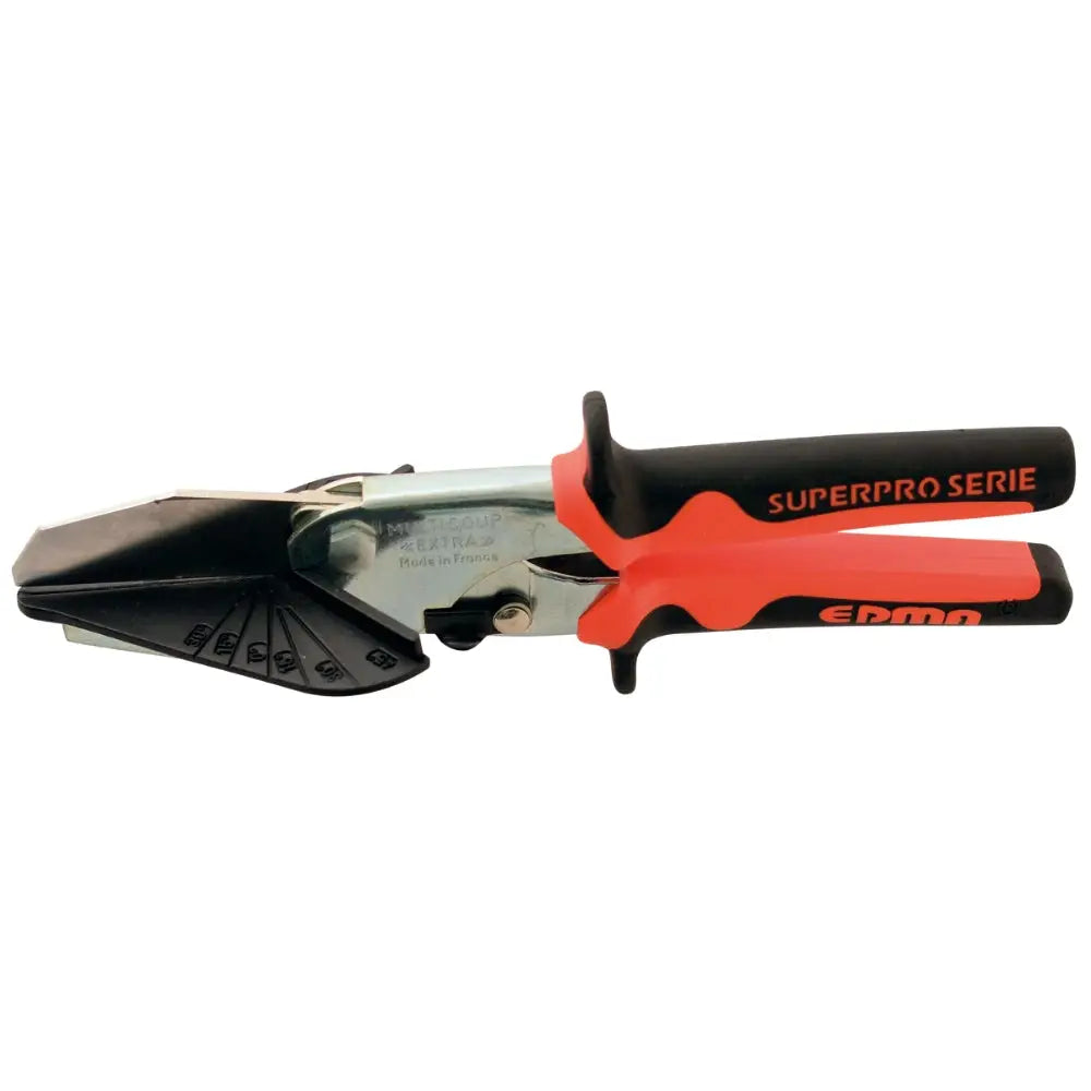 Edma Multi Coup listsax med utbytbart 65 mm långt kraftigare knivblad och vinklar graderade i plattan. Perfekt för att klippa både trä, plast, gummi och lister av olika slag, även lackerade. Försedd med enhands låsanordning och sköna gummerade tvåkomponentshandtag för gott grepp. Knivbladet är 65 mm långt och 25 mm högt och klipper obegränsat i tjocklek. Plattan är tydligt graderad och streckad i vinklarna 0° / 15° / 30° / 45°. SB-packad.