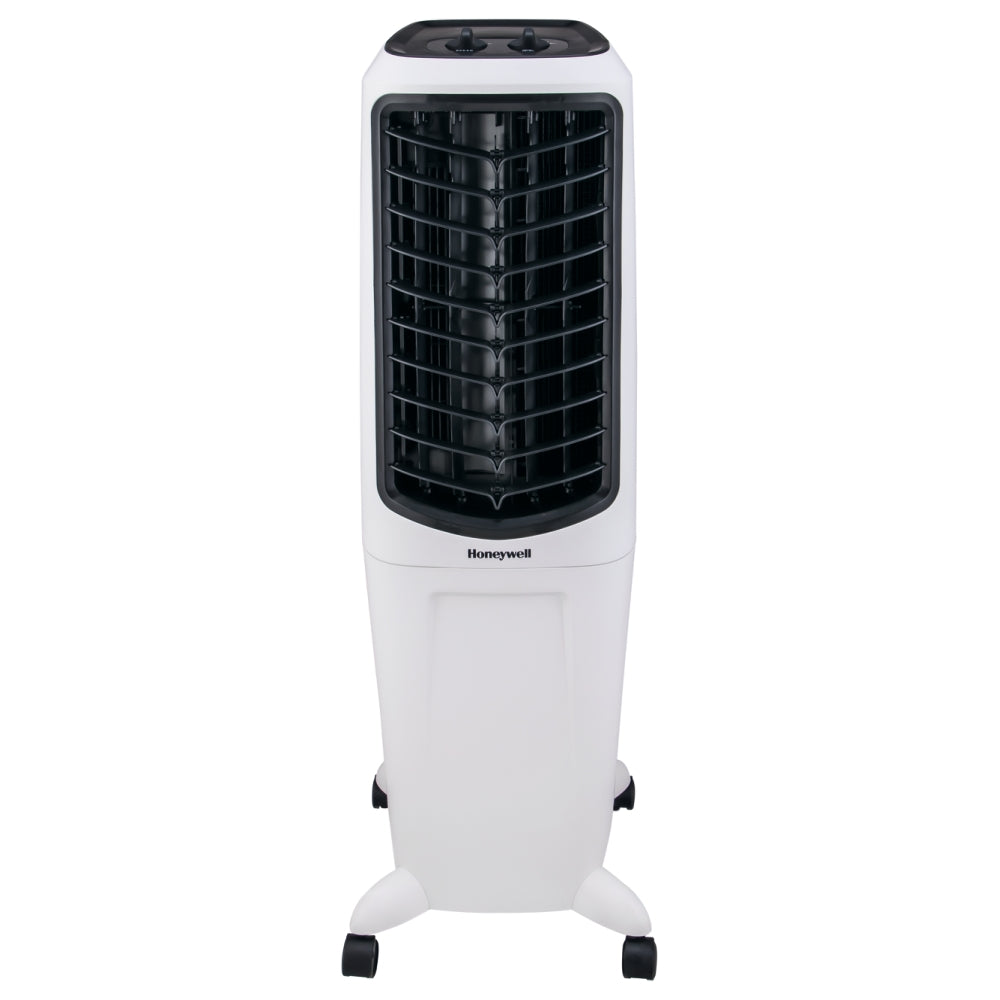 En smidig och kompakt luftkylare med god kapacitet. Lämplig för lägenheter, vardagsrum, mindre kontor, butiker eller konferenslokaler. Smidig fjärrkontroll och isfack för snabbare kylning. Oscillerande fläktvinge. Utrustad med timer som gör den lätt att sköta. Enkelt att fylla på vatten. Effektivt luftfilter som inte behöver bytas. Ingen installation behövs. Kraftfull fläkt med över 800 m³ luftgenomströmning.