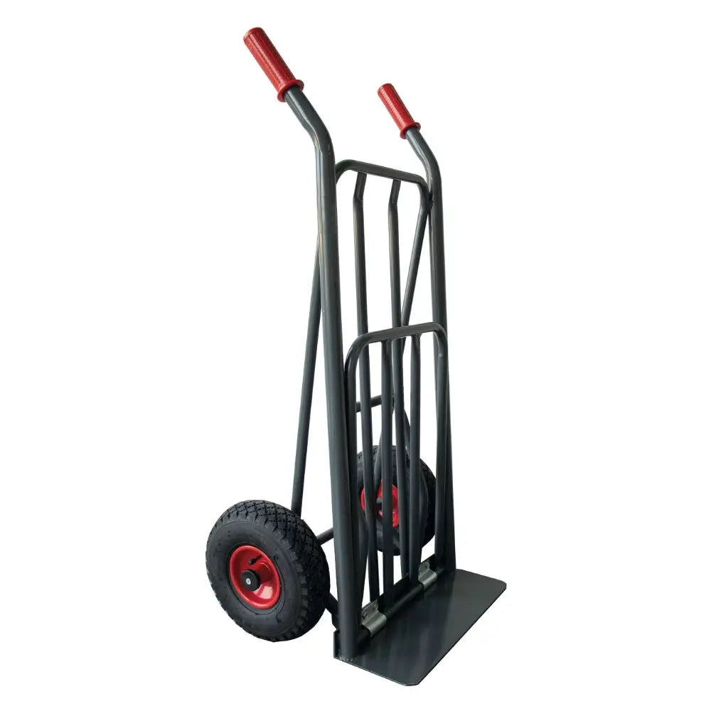 Passar bra både på byggarbetsplatsen, lagret och kontoret. Patenterad tippa-lätt-funktion förenklar tunga lyft med minimal insats. Robust stålram, kraftiga luftgummihjul, fast bärplatta och fällbar lastplattform. Levereras monterad.