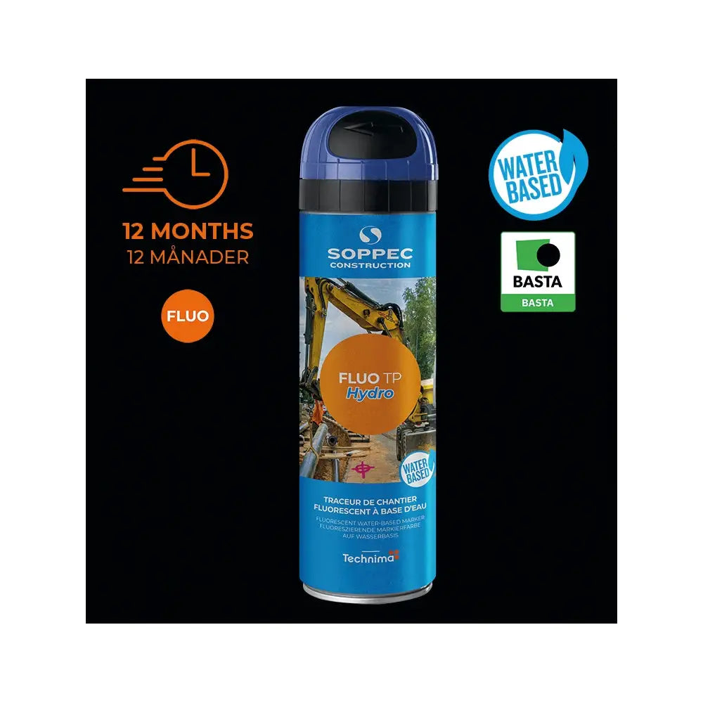 Soppec Hydro TP är en ny miljövänlig vattenbaserad (20% vatten) märkfärg och en högkvalitativ fluorescerande markeringsfärg med mycket god vidhäftningsförmåga och används där kravet på synbarhet är stor.