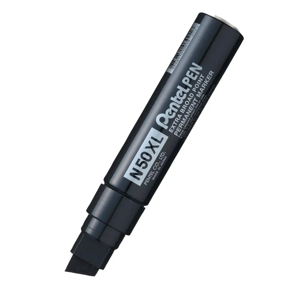 Pentel N50XL är en alkoholbaserad vattenfast och snabbtorkande permanent märkpenna med aluminiumkropp och skuren bred extra tålig fiberspets på 8 - 15,4 mm som håller formen även efter långvarig användning.