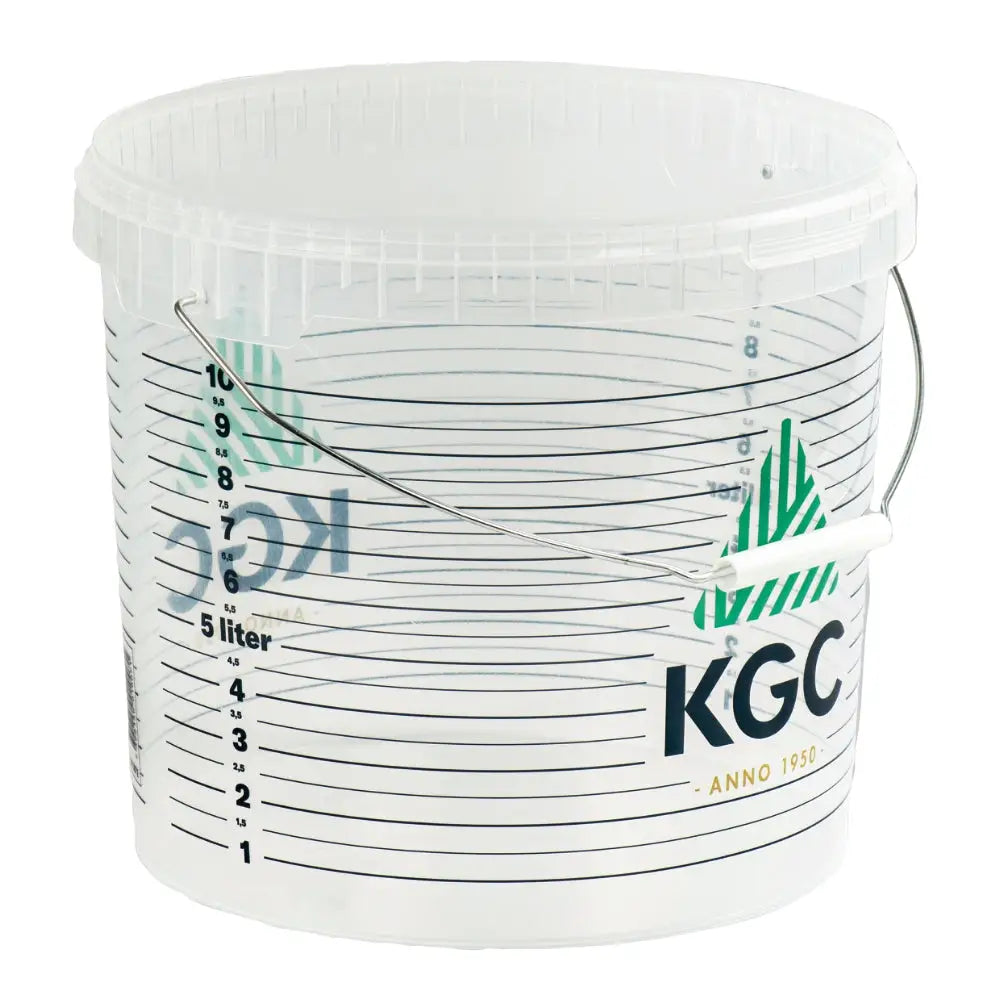 Livsmedelsgodkänd, transparent hink med tydlig litergradering. För vatten till fix, fog och spackel. Tillverkad av polypropenplast med 3,2 mm bygelhandtag i galvaniserat stål med plastgrepp.