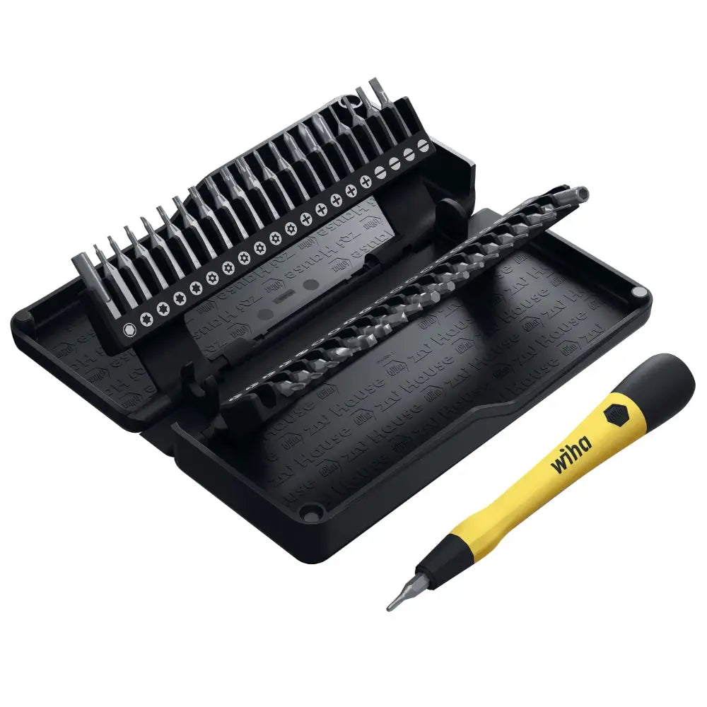 Den kompakta förvaringslådan gör det enkelt att sortera och hitta enskilda Wiha-bits. Således är den finmekaniska bitssatsen din praktiska följeslagare på vägen eller hemma.