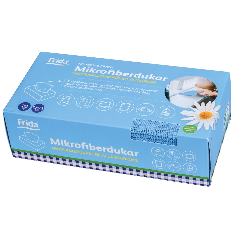Praktiskt storpack mikrofiberdukar i en kartong. Perfekta för effektiv rengöring av alla ytor - absorberar smuts och vätska utan kemikalier. Tvättbara och återanvändbara.