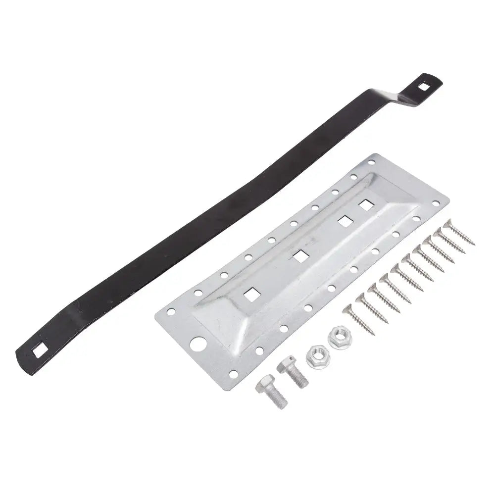 Infästningsbalken levereras tillsammans med de byglar och skruvar som behövs för att fästa stålstegen i balken. Allt du behöver för att fästa monteringspaketen i taket ingår. Balken är 580 mm bred och 50 mm hög.