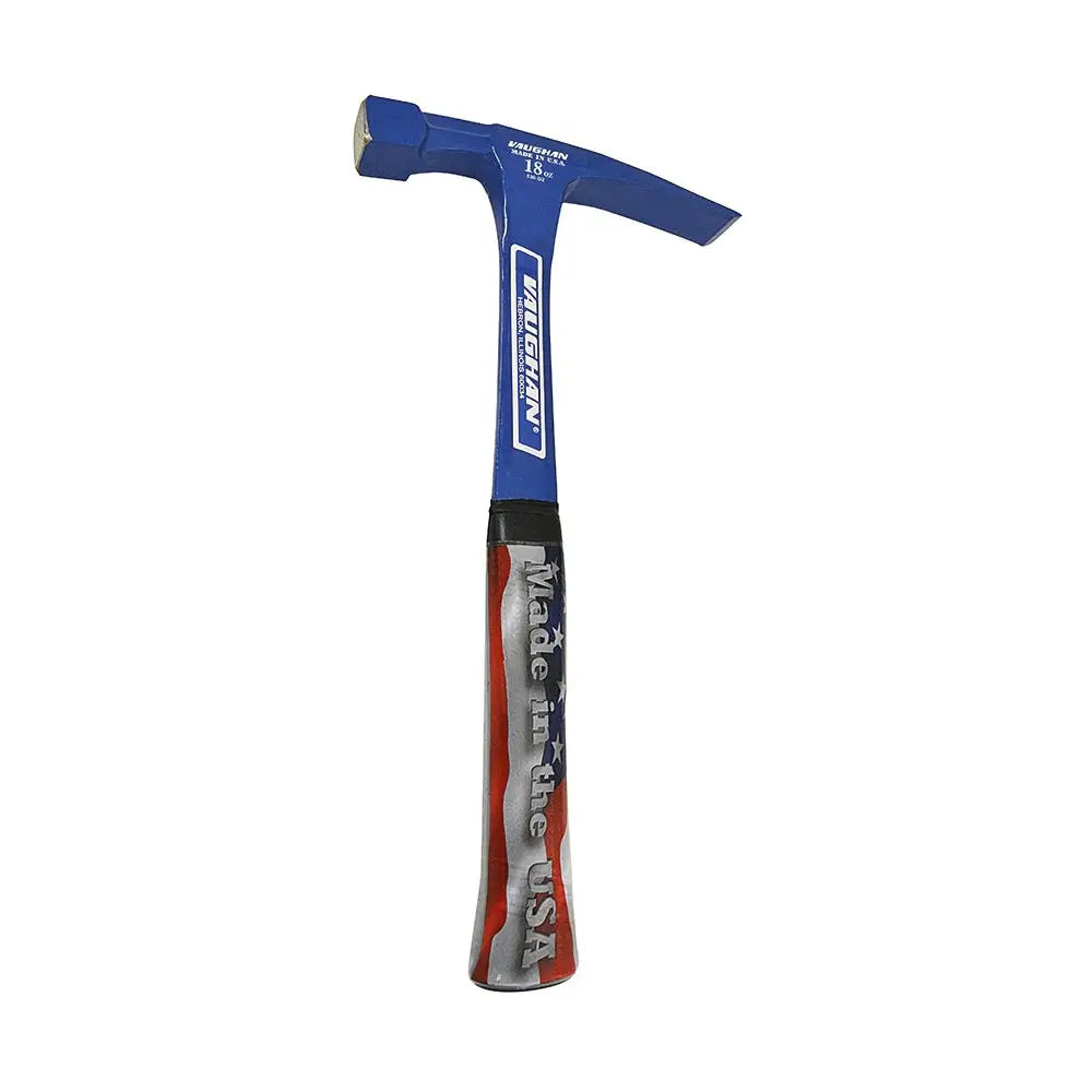 Murarhammare Vaughan 18 oz med fyrkantigt huvud och bred slipad egg. Försett med solitt stålskaft och patenterad hickory och gummiplugg "SHOCK-BLOK" som reducerar vibrationerna i hand och arm till ett minimum. Greppdelens T-formade konstruktion av hög hållfasthet reducerar handtagets vikt för att uppnå bättre balans.