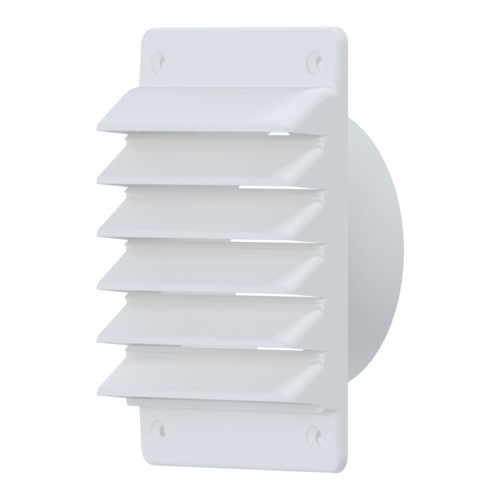 Rektangulärt galler anpassat för ventiler. Avsett att användas på utvändig vägg, försett med försänkta skruvhål för skruvmontage. Försett med snäppfäste till Fresh väggenomföringsstosar. Gallret tillverkas i PP (polypropen) med låg miljöpåverkan.