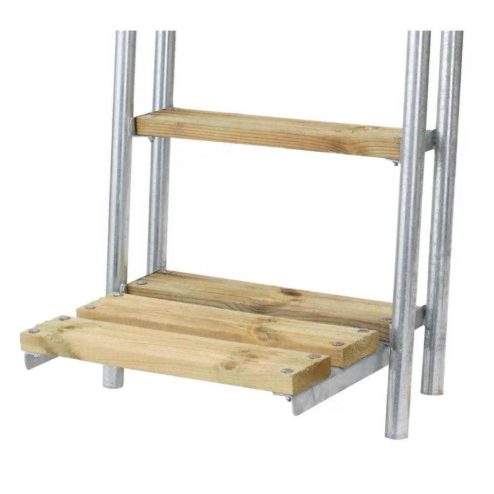 En plattform till din bryggstege som ger en stadig bas att stå på  som är gjord av två fotsteg och mäter 450x220 mm. Tillverkad i varmförzinkade stålrör vilket gör dem underhållsfri.