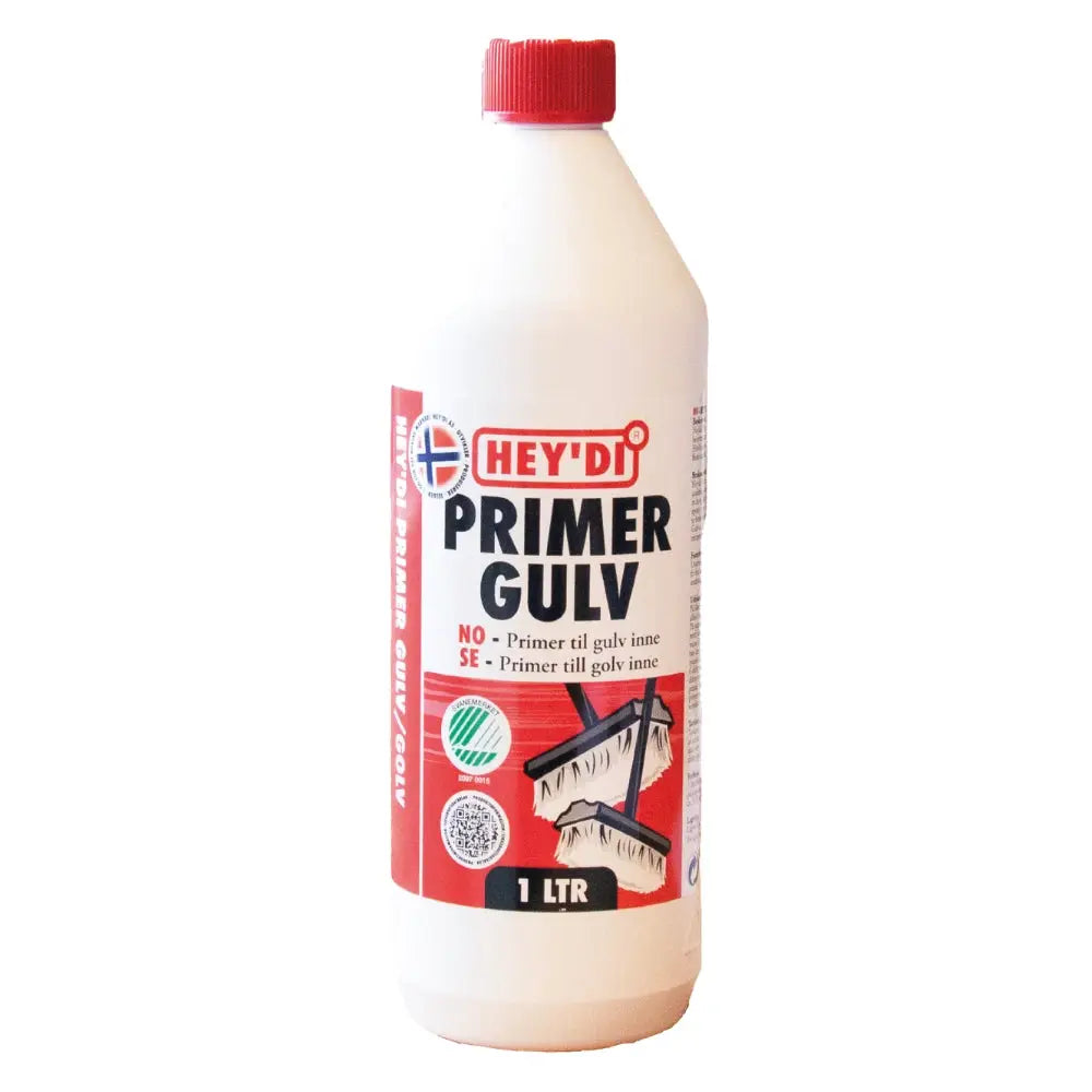 Primer för inomhusbruk. Primer Golv är en acryldispersion som används som förbehandling för att säkra att Hey’di avjämningsmassor får god vidhäftning till de flesta underlag.