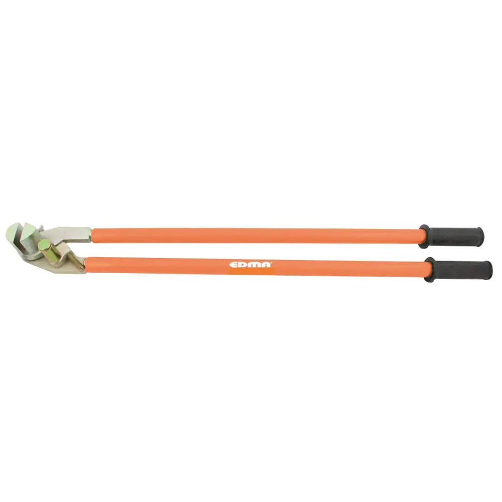Edma rännkroksriktare 810 mm med huvud av smitt gjutjärn och stålhandtag med plastskänklar. Klarar rännkrokar upp till 40 mm bredd och 8 mm tjocklek.
