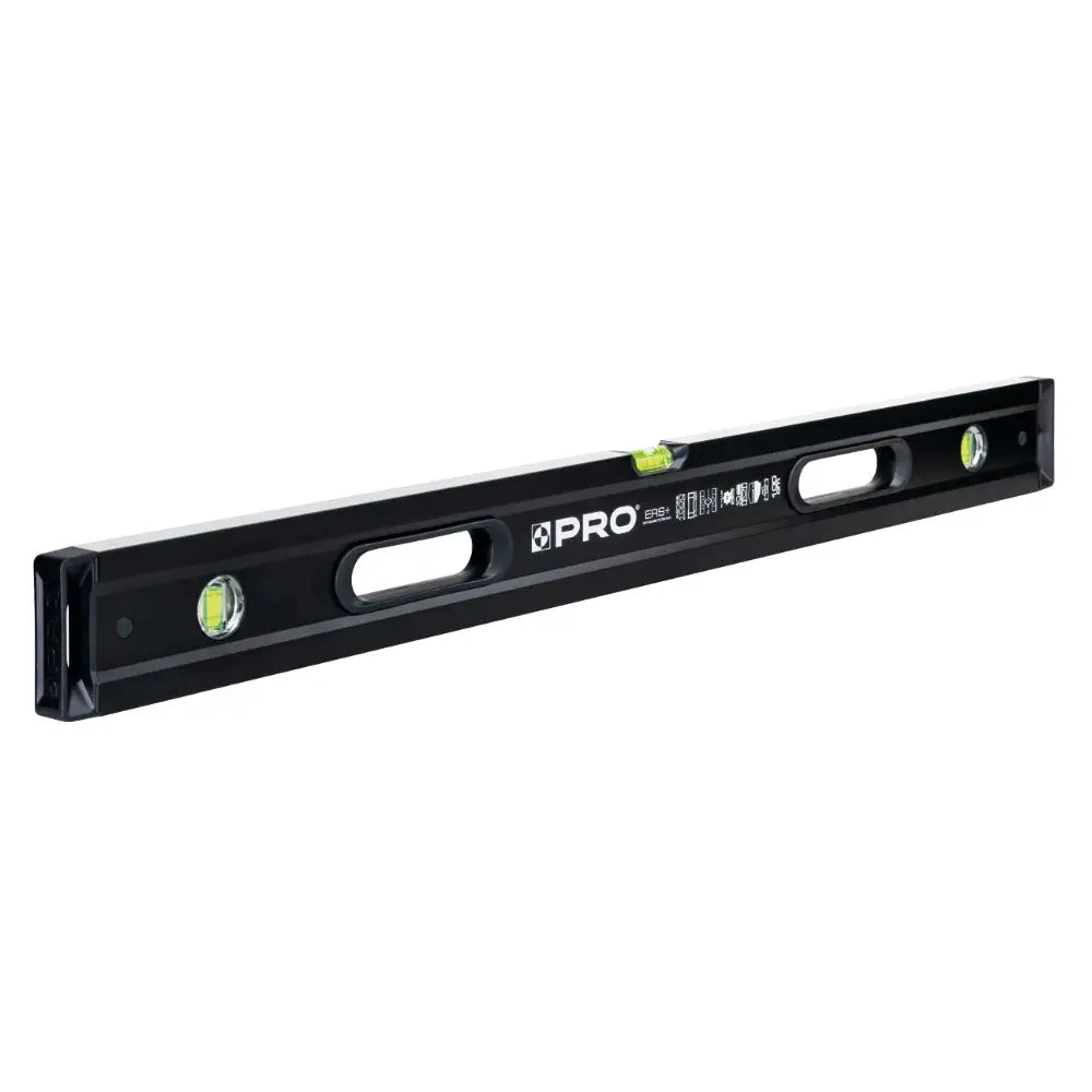 Pro 1000 rätstege cm för proffs. Av extra stark trekammar aluminiumprofil (1,1 kg/m) med 3 st okrossbara extra stora epoxilimmade libeller - 1 st våg och 2 st lod med förstoringseffekt på 60%.
