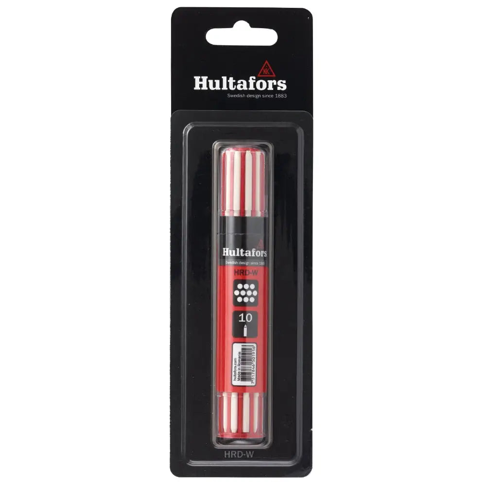 Reservstift i smart behållare om 10 stift för märkning på alla typer av underlag. Hultafors Refill kan med ett clips fästas i fickan eller i verktygsväskan. Utformningen på behållaren skyddar stiften under transport och matar endast ut ett stift åt gången.