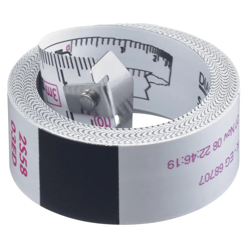 Reservband till Talmeter VP. Vitt stryktåligt stålband, bandbredd 16 mm, gradering i millimeter. Kombinerade märk- och mäteggar gör att du snabbt och enkelt kan mäta upp och märka ut både utvändiga och invändiga längder. Diametermätning med skalan på ovansidan av bladet ovanför millimeterskalan.