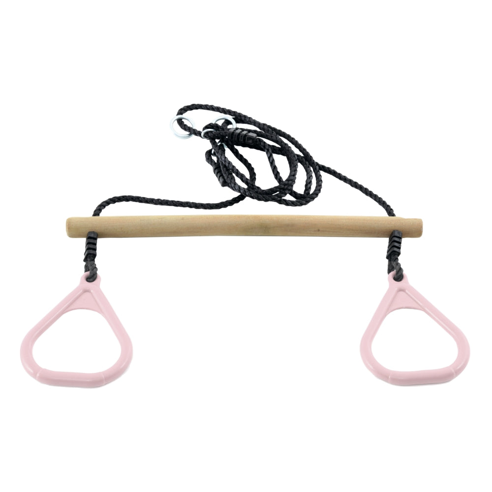 Trätrapets med plastringar för spralliga barn! Häng upp den i din gunga eller i trädgården.