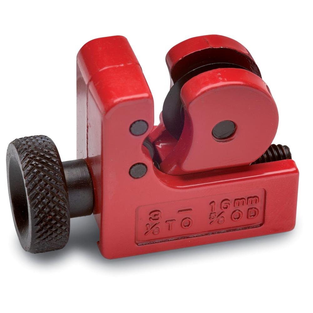 Kapar koppar- och mässingrör. Med tunn skärtrissa och två rullar. För rördiameter 3 - 16 mm.