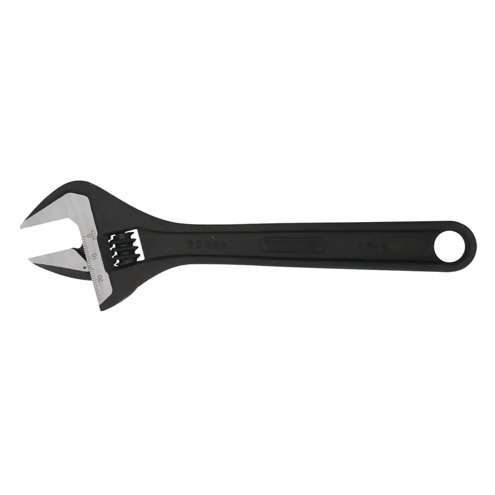 Skiftnyckel, med skala för mutterdim. Tillverkad i Cr-V stål. Svartoxiderad ytfinish. Överenstämmer med DIN 3117/ISO6787.