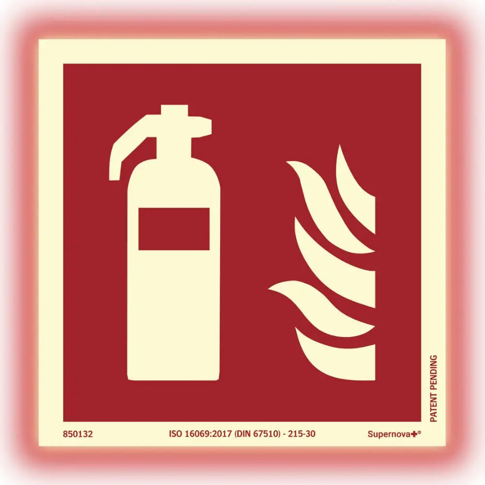 Skylt Brandsläckare. Tillämpning: Vägg. Material: Aluminium. Yta: Supernova+.