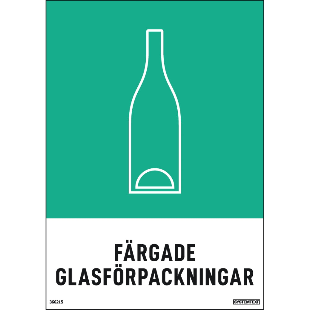 Skylt Färgade glasförpackningar. Tillämpning: Vägg. Material: Dekal. Yta: Tryck.