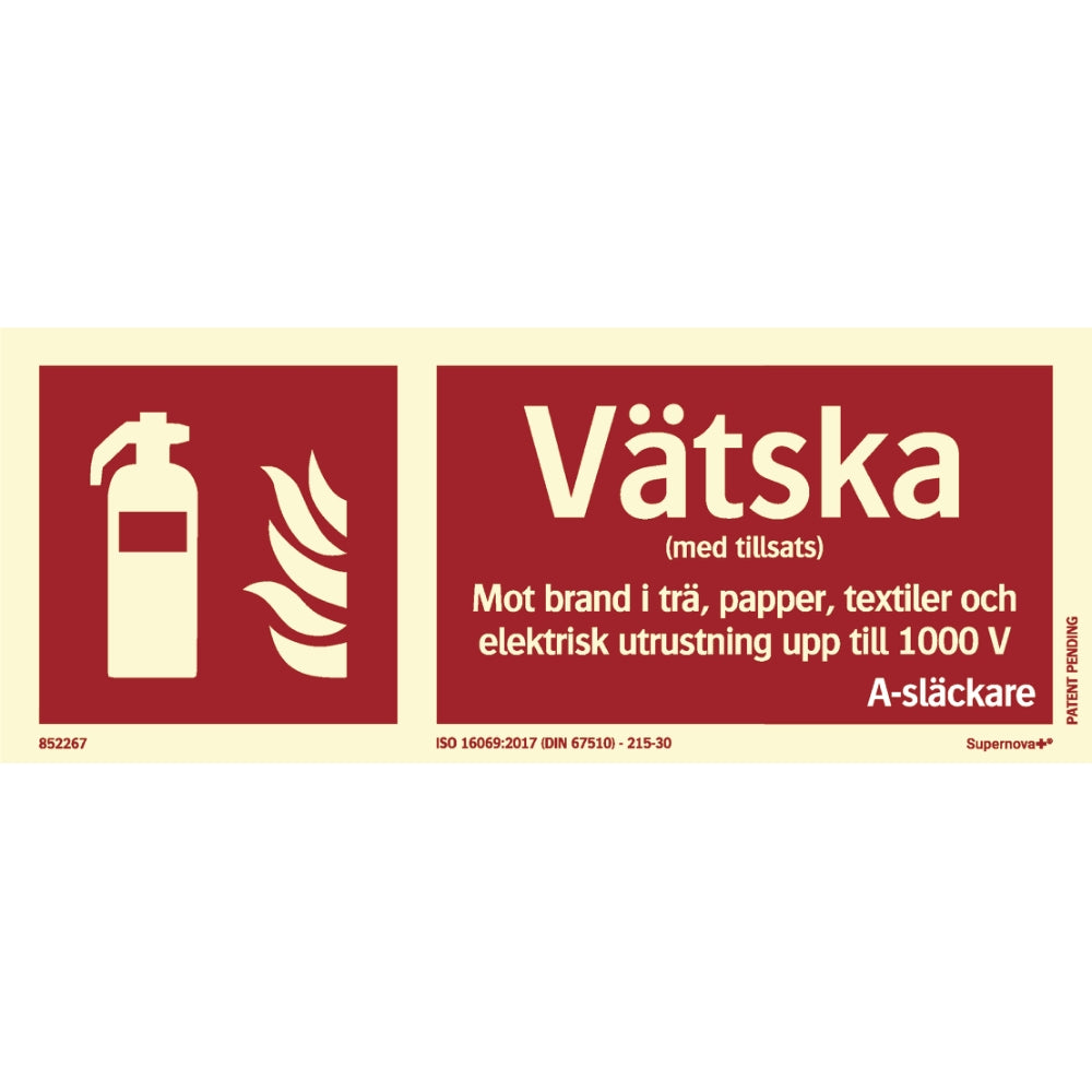 Skylt Supernova+ Vätskesläckare ISO. Tillämpning: Vägg. Material: Aluminium. Yta: Supernova+.