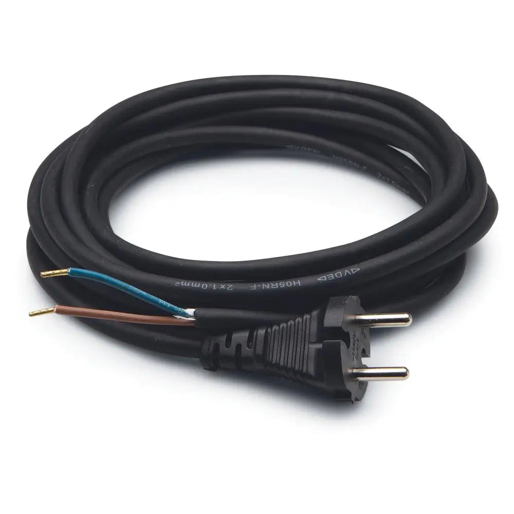 Anslutningskabel av gummi för användning till t ex handverktyg. Med kl II stickpropp. SB-förpackad.