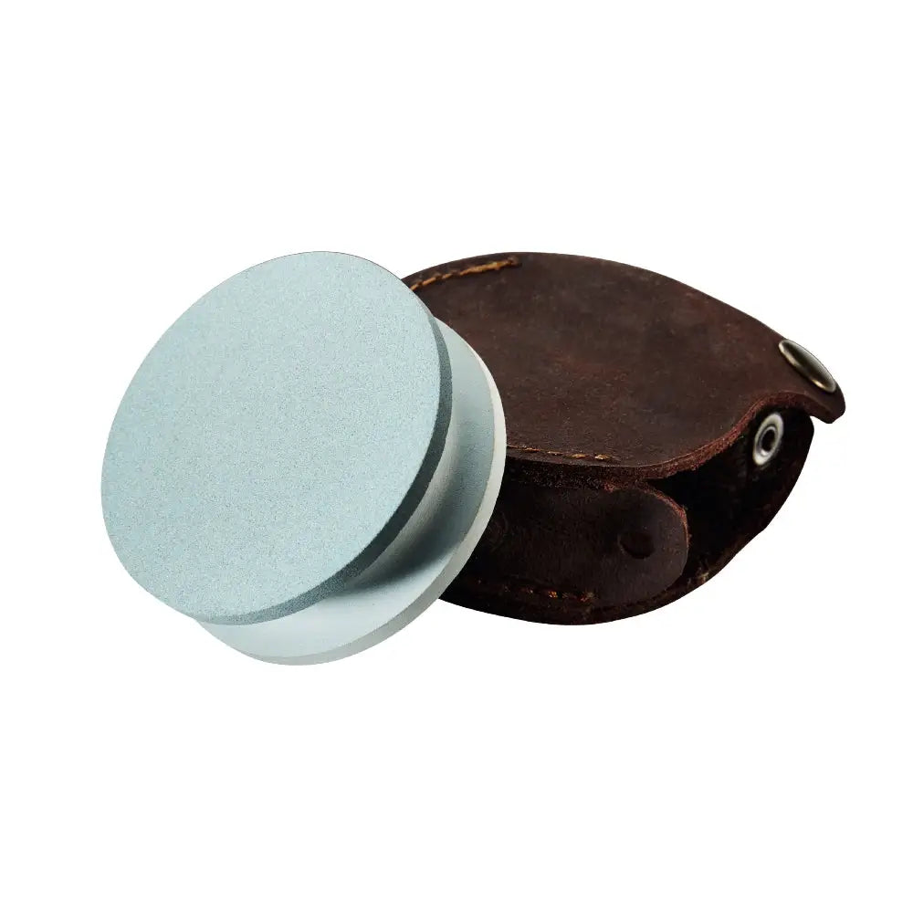 Det snygga fodralet i äkta läder skyddar din slipsten och säkrar en lång livslängd. Den grova sidan har en kornstorlek på 180 och den finare har kornstorlek 600 vilket är en bra kombination för att få upp skärpan på din yxa igen. Slipa gärna med vatten så går arbetet enklare.