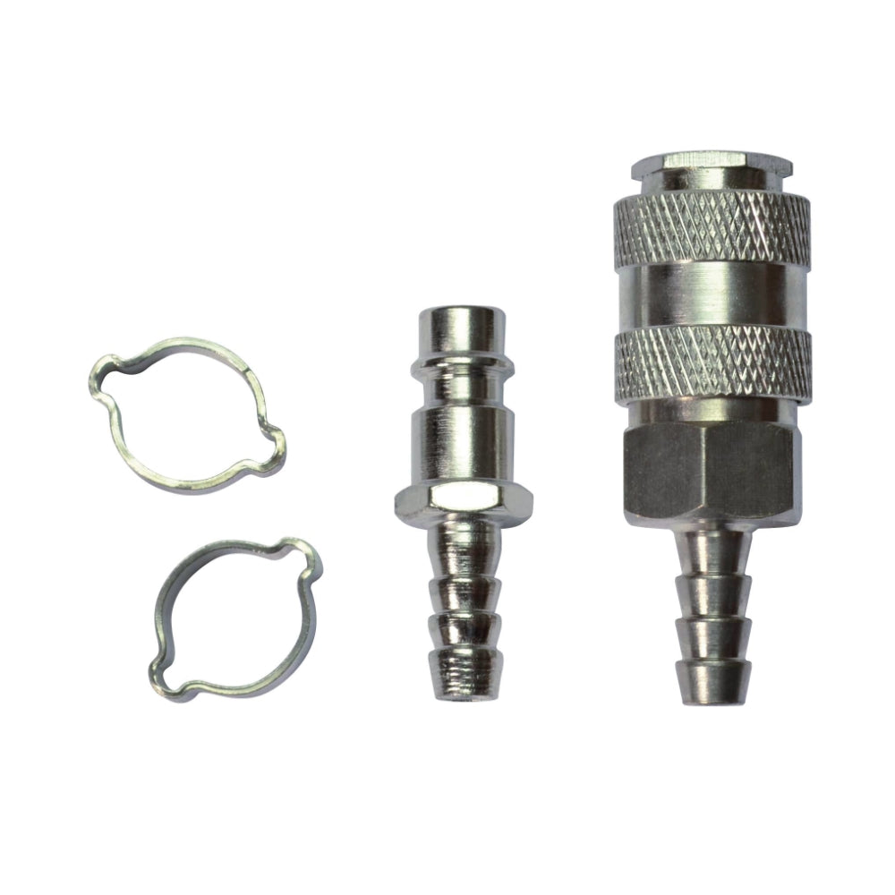 Snabbkopplingsset hona hane för slang. Inkl slangklämmor.