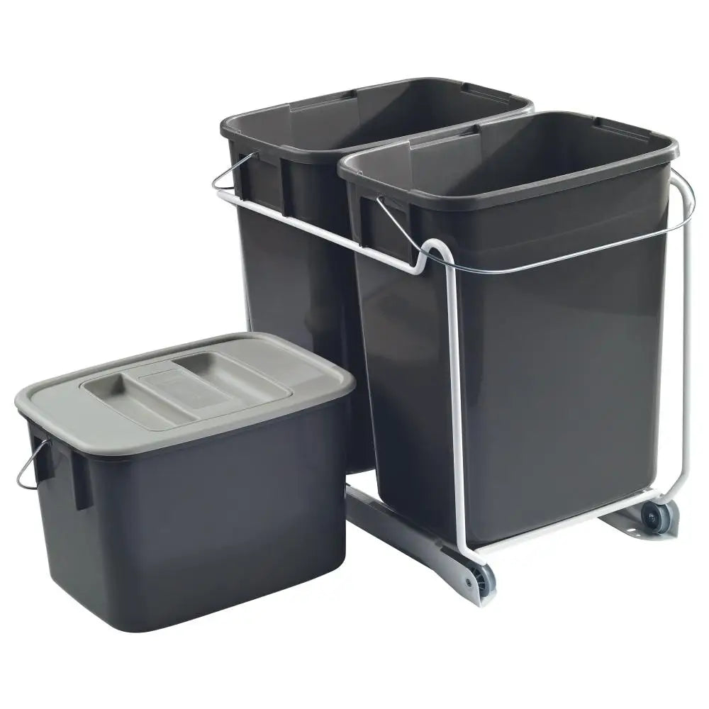 Sats för källsortering innehåller: Lock, hållare, 1 st 7 liter, 2 st 12 liters behållare, samt utdrag.