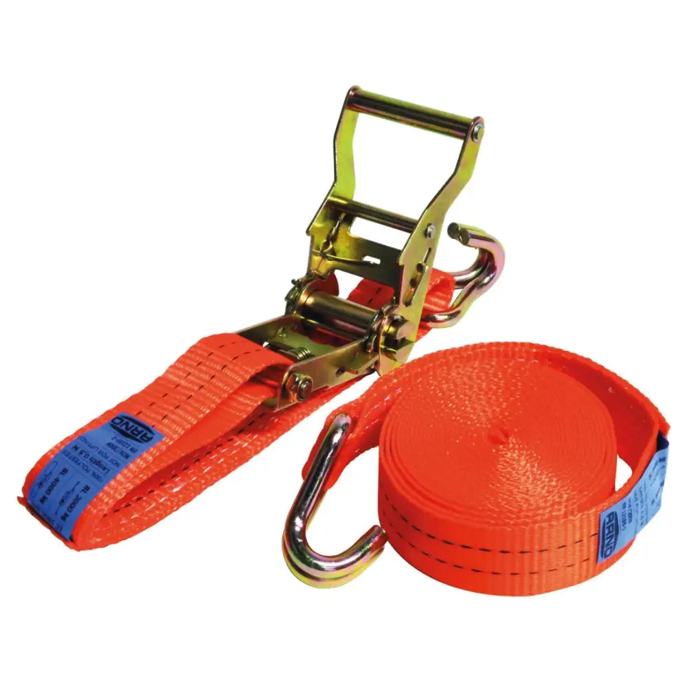 Arno spännband komplett i 2 delar på 0,5 + 5,5 m där både krokar och spännmekanism är galvade för bästa funktion och hållbarhet. Handtaget är plastbelagt och i större utförande med trefingergrepp för bästa kraft och ergonomi. Även release mekanismen är plastbelagd. Surrningsstyrka 4000 kg och brottgräns på 2000 kg (LC=1000 kg) med en bandbredd på 35 mm. Avsedd för snabb och effektiv surrning av transporter och last för t.e.x släpkärror, takräcken, lastbilar, skåpbilar och containers. Väderbeständigt slitstarkt och styvt polyesterband med tät väv som är mycket tåligt mot slitage, olja och värme. Tillverkat i Sverige/Europa. SB-pack.
