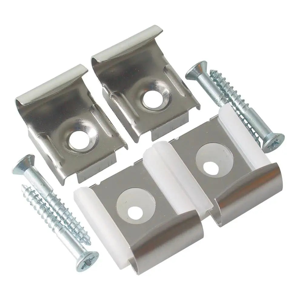 Förnicklade. Sats om 2 fasta och 2 fjädrande klammer. Rekommenderad maxvikt per sats är 15 kg . Avsedd för spegel med 4mm eller 6mm glas. SB-förpackad.