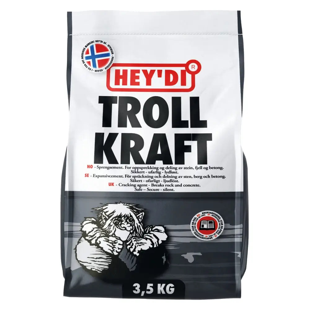 Hey’di Trollkraft är ett special-cement som efter blandning med vatten utvecklar ett enormt expansionstryck på upp till 9000 ton/m² som ger ljudlös och säker spräckning och demolering av berg och betong. Hey'di Trollkraft utvecklar inga gaser och är ofarligt vid korrekt användning.
