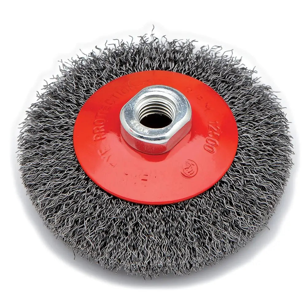 Vinkelslipfäste med M14 gänga. Tjockleken på tråden i borsten är 0,3 mm. Maximalt varvtal 12500 v/min.