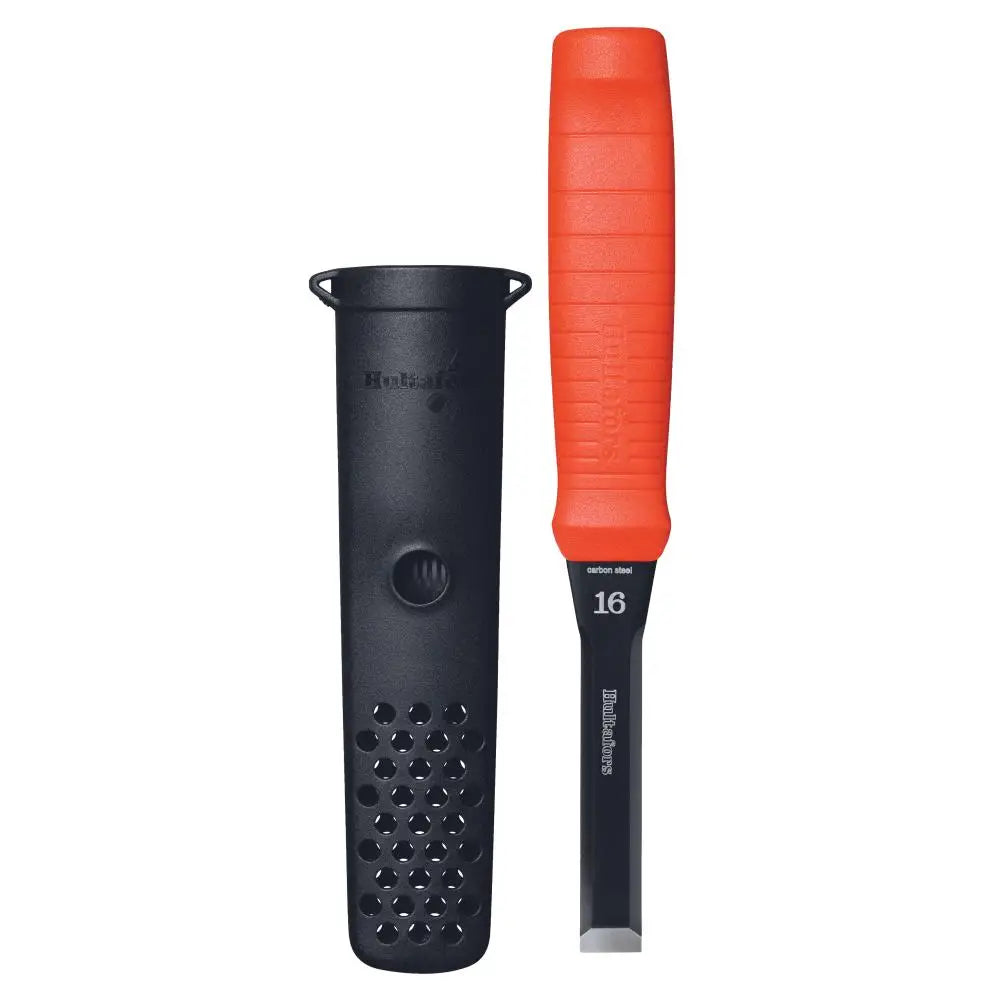 Stämjärn med perfekt precision, vasst, pålitligt och alltid nära till hands. Redo för användning som att hugga, bända och skrapa med. Perfekt slipade blad av japanskt stål och ett smidigt handtag som klarar hårda hammarslag. Smart hölster för ökad tillgänglighet som enkelt kan fästas i bältet eller på en knapp. Elektrobeläggning för maximalt rostskydd rostskydd (EPD).
