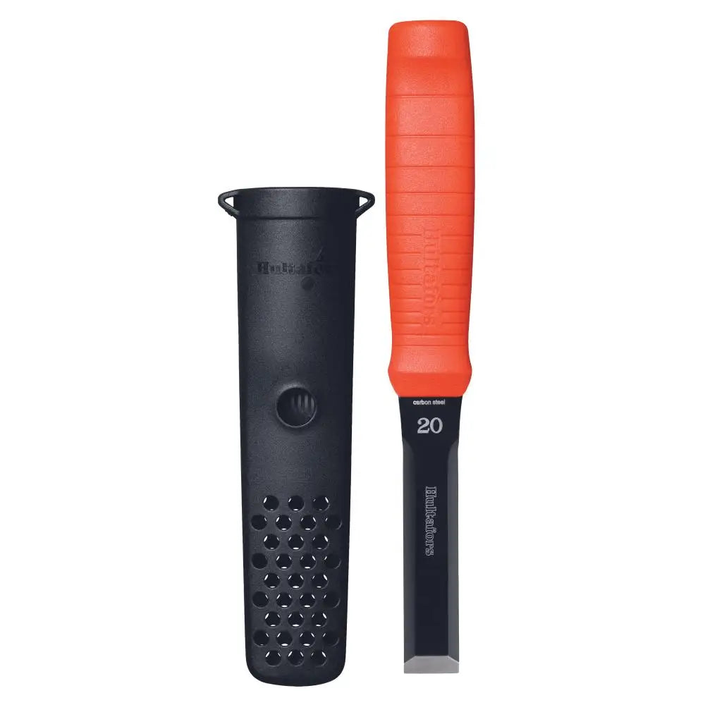 Stämjärn med perfekt precision, vasst, pålitligt och alltid nära till hands. Redo för användning som att hugga, bända och skrapa med. Perfekt slipade blad av japanskt stål och ett smidigt handtag som klarar hårda hammarslag. Smart hölster för ökad tillgänglighet som enkelt kan fästas i bältet eller på en knapp. Elektrobeläggning för maximalt rostskydd rostskydd (EPD).