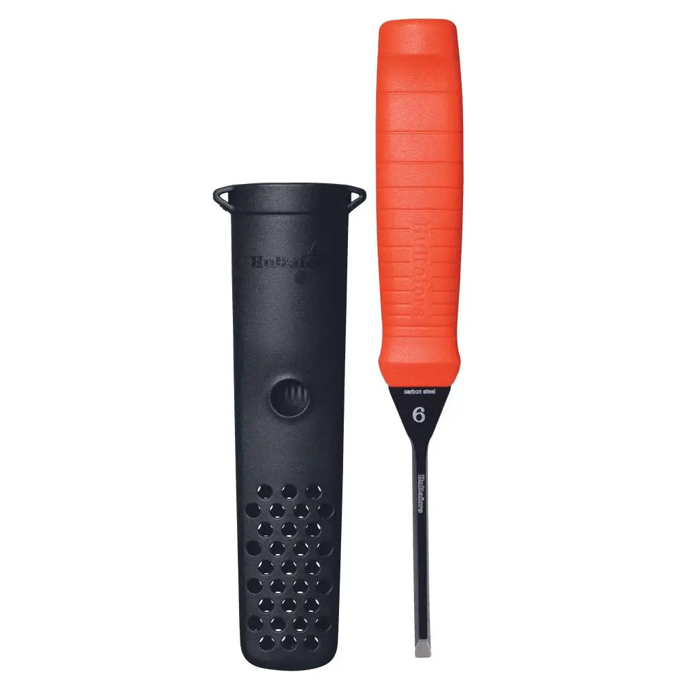 Stämjärn med perfekt precision, vasst, pålitligt och alltid nära till hands. Redo för användning som att hugga, bända och skrapa med. Perfekt slipade blad av japanskt stål och ett smidigt handtag som klarar hårda hammarslag. Smart hölster för ökad tillgänglighet som enkelt kan fästas i bältet eller på en knapp. Elektrobeläggning för maximalt rostskydd rostskydd (EPD).