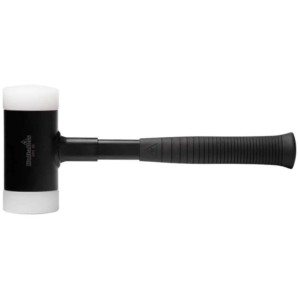 Hammare med slaghuvud av stål som är fyllt med stålkulor, utbytbara slag av nylon med hårdhet (70 shore) som är skonsam mot arbetsstycket. Stålskaft med gummihandtag.