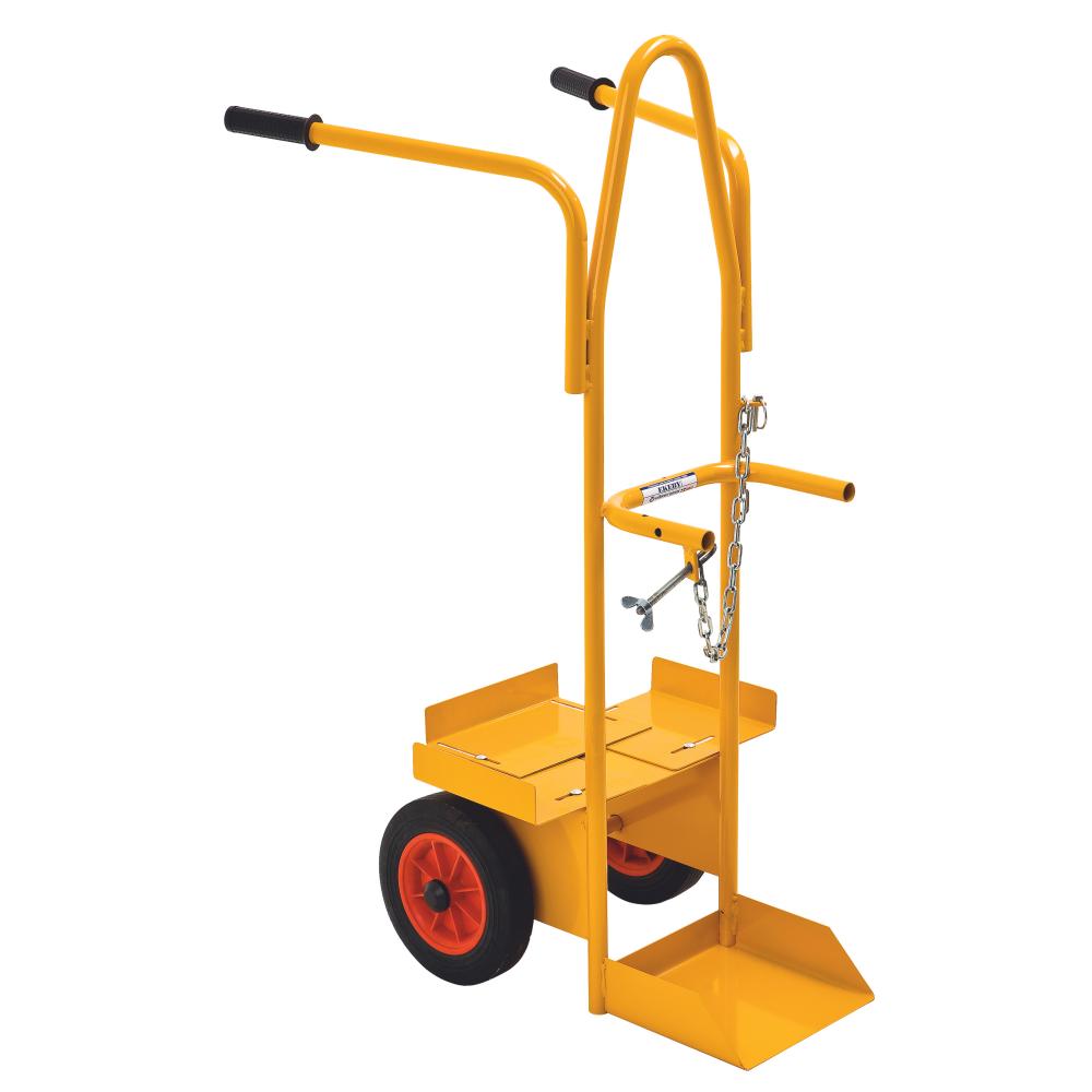 Svetskärran är anpassad för både svetsaggregat och en 20-50 liters tub. Justerbar storlek på plattformen för svetsaggregatet. Levereras med spännband. Max last: En tub samt ett svetsaggregat. H1200xB650xD600 mm. Lastplan för tub största mått: D310xB520 mm. Lastplan för aggregat: D250xB250 mm. Aggregathöjd max 650 mm. Hjul: Massivgummi 250x50, glidlager (Ø 250 mm). Spårvidd: 330 mm. Egen vikt: 17 kg.