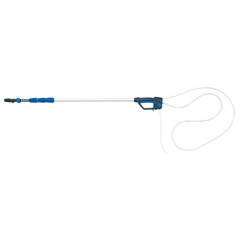 Vatten blandas automatiskt med Roof Cleaner rengöringsmedlet och blandningen läggs ut på taket via trycket från högtryckstvätten. Beläggningarna kommer efter en period att försvinna genom verkningen av rengöringsmedlet och väder och vind. Behandlingen görs varje år eller efter behov. Längden kan regleras från 1,5 till 4,2 meter via teleskopröret.