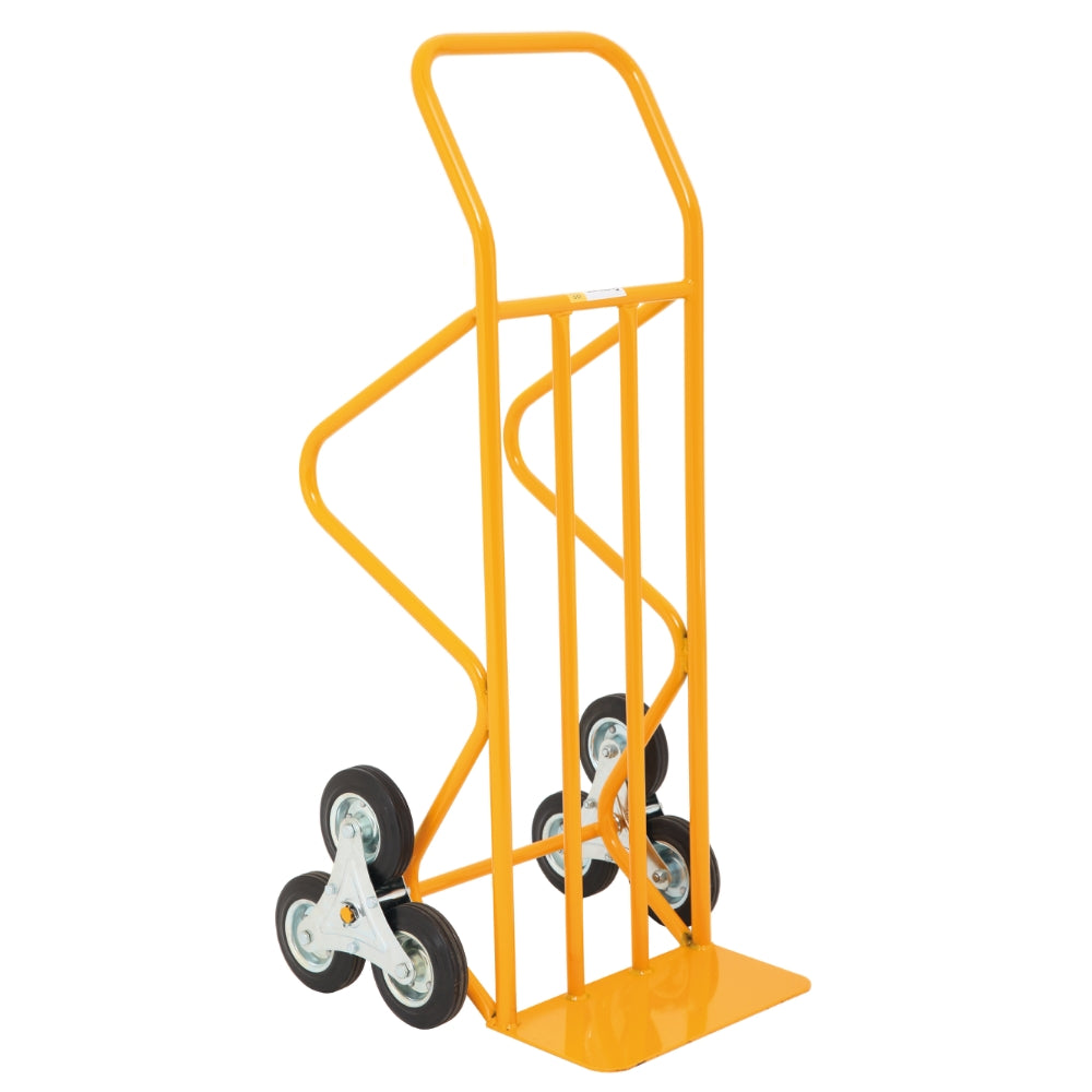 Klassisk trappkärra med hjulstjärna. För transporter i trappor med steghöjd 150 - 180 mm. Tillverkad av pulverlackerade stålrör. Maxlast upp till: 250 kg. Hjulutrustning: 6 st massivgummihjul 150x40 mm med glidlager. Spårvidd: 460 mm. Största mått: L1180xB550xH540 mm. Lastkniv: D170xB400 mm. Vikt: 18 kg. Leveransutförande: Monterad.