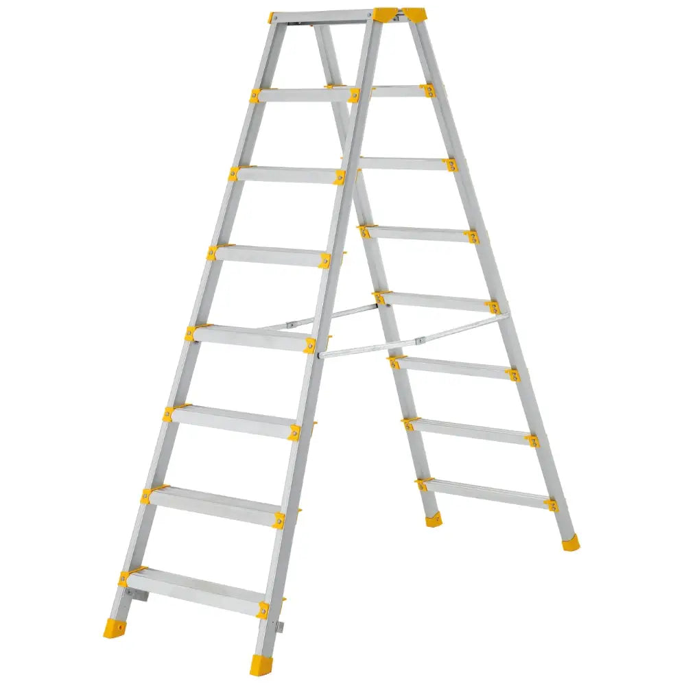 En robust och mångsidig proffsstege med steg på båda sidor. Innovativ infästningsteknik med FDS-skruv ger en stabil konstruktion med minimal svikt och riktigt lång livslängd.