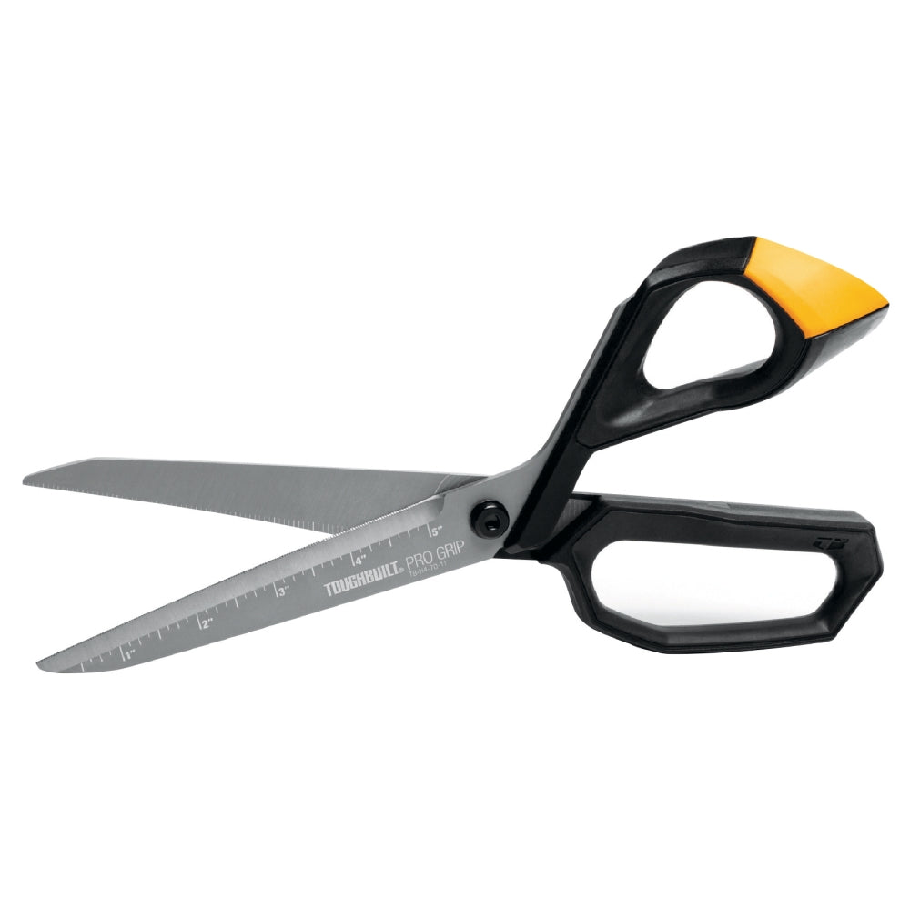ToughBuilt Pro Grip Sax 280 mm är en ergonomisk sax för arbetsplatsen. Klipper lätt alla typer av material som plast, papp, gummi, läder, tyg, PVC, aluminium m.m. Det patenterade greppvänliga ergonomiska handtaget omsluter tummen för att leverera optimal klippstyrka med minimal belastning i varje klipp, hela dagen. Heavy Duty titanbelagda rostfria lätt tandade stålskär ger snygga rena snitt i mängder av material samt motverkar effektivt att skären går isär och glappar även efter lång användning.