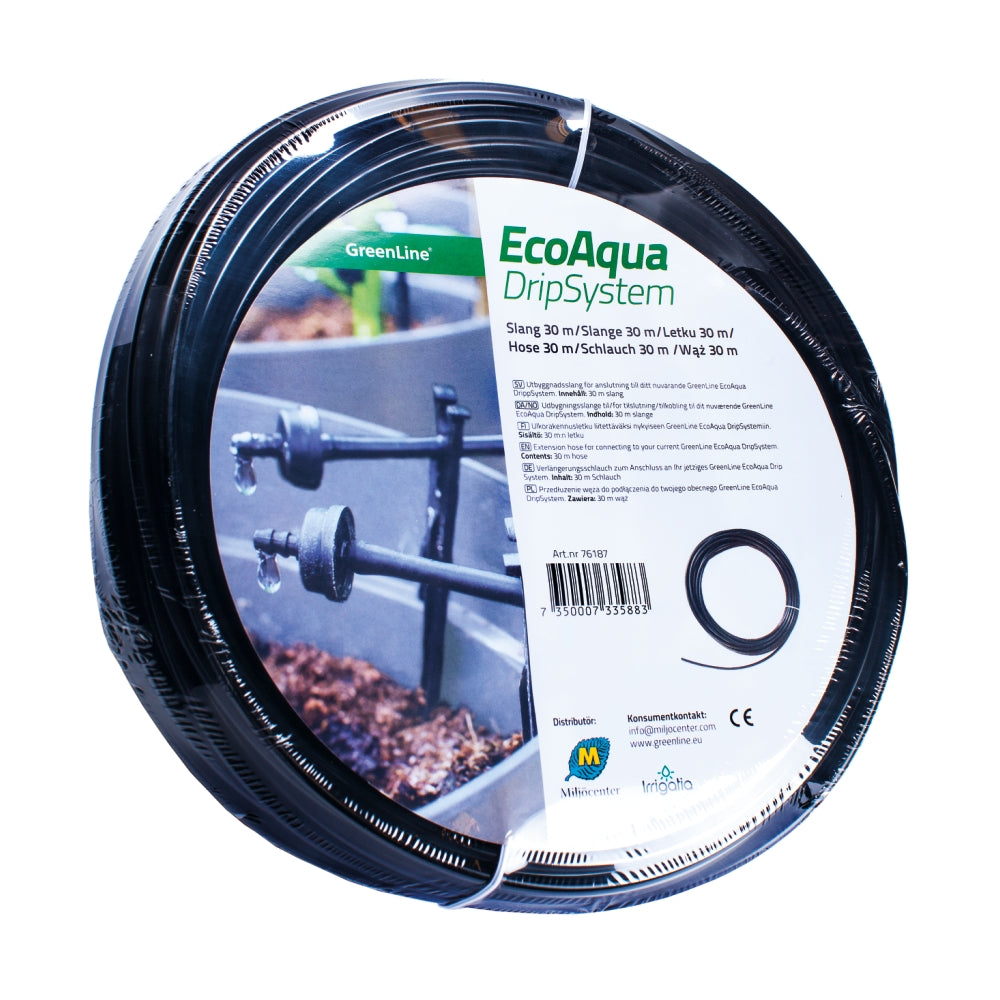 Utbyggnadsslang till Greenline EcoAqua Drippsystem. Vid behov av att transportera vattnet längre ifrån din solenergipump, koppla förlängningsslangen direkt till ditt nuvarande Greenline EcoAqua Drippsystem.
