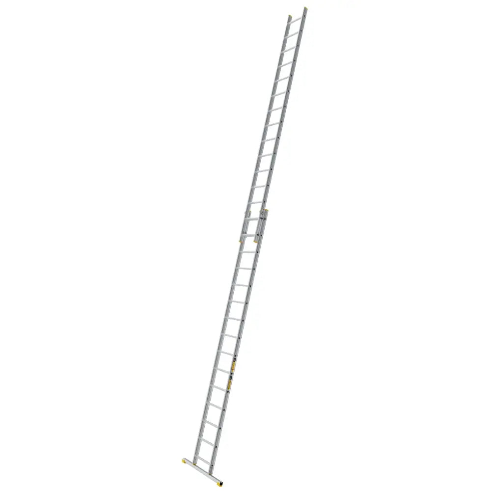 Stegarna är extra breda, 530 mm, vilket ger användaren bättre räckvidd och gott om plats för att klättra bekvämt och säkert. En stark BOX-profil i aluminium med kraftiga infästningar gör stegen stabil och stegpinnarna har dubbelriktat halkskydd. Stegfoten som medföljer stabiliserar stegen och förhindrar den från att välta i sidled. Toppfästenas design gör att det är lätt att använda stegen fristående. Automatisk låsning försäkrar att stegen alltid är säkert låst under användning.