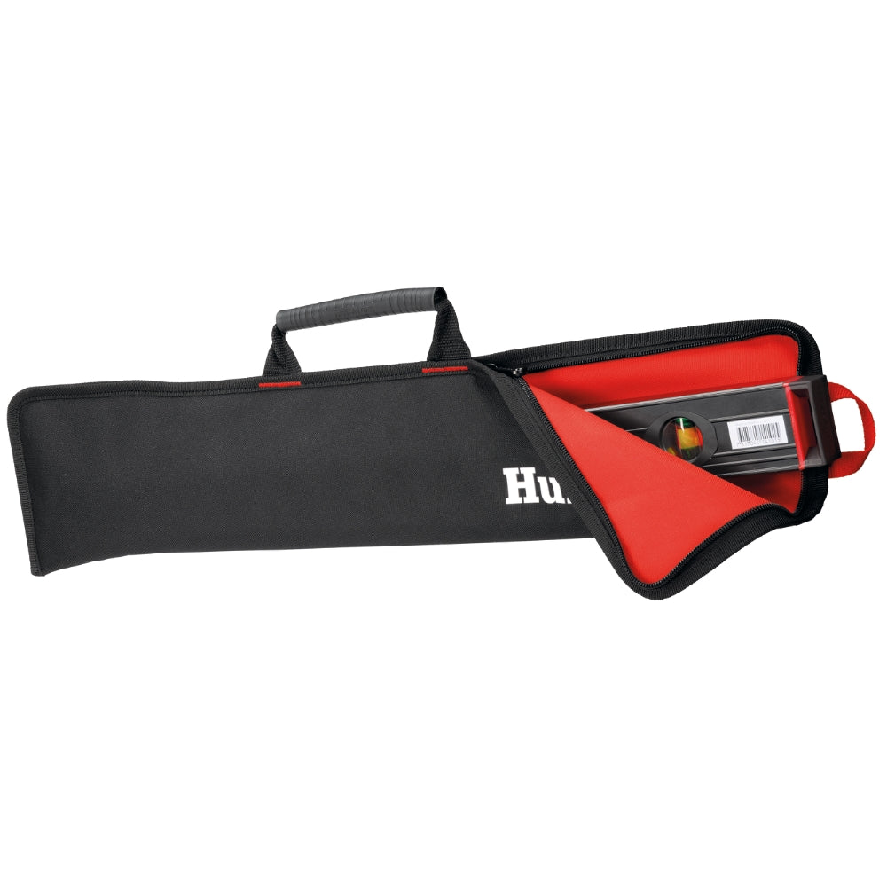 Väska för vattenpass 60 cm. Skydda ditt vattenpass och förläng livslängden på det. Denna vadderade väska skyddar ditt vattenpass vid transport och förvaring så du kan vara säker på att skydda det mot stötar. Vit yta på baksidan för smidig märkning av väskan samt ögla för att hänga upp vattenpasset vid förvaring.