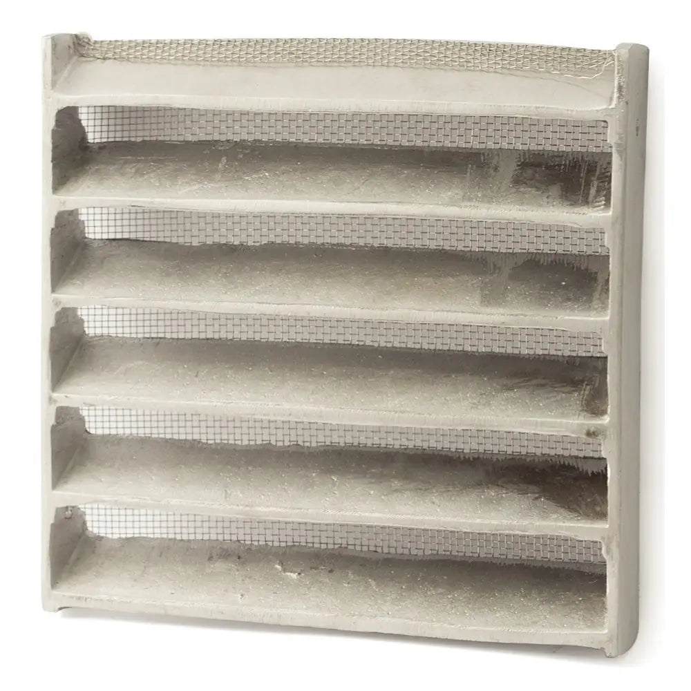 Ventilgaller av aluminium. Med rostfritt insektsnät. Höjd 125 mm. Bredd 125 mm.