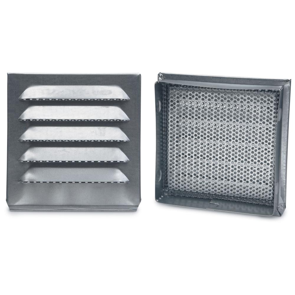 Ventilgaller av stål med ram. Baksida av perforerad metall med hål 3 mm - förhindrar möss från att ta sig in i ventilationen, dock ej säkert mot insekter.