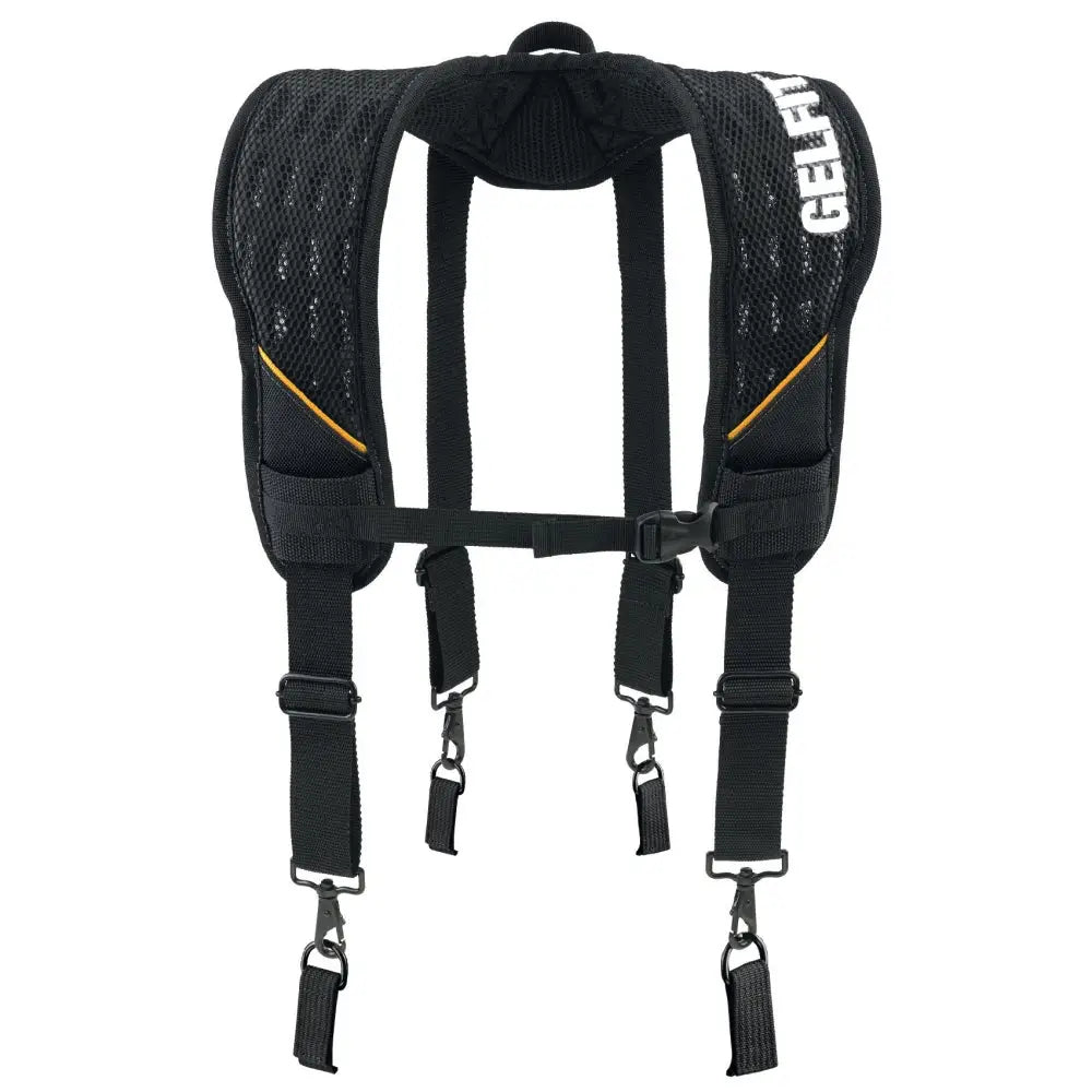 Verktygsbälteshängsle GelFit ClipTech. ToughBuilt gelévadderade och ventilerade verktygsbälteshängslen för optimal komfort med avlastning under hela arbetsdagen. Fördelar effektivt vikten även vid hög belastning. Universalt kompatibel med alla bälten på marknaden med de fyra karbinhakarna i metall men framtagen främst för alla ToughBuilt bälten.