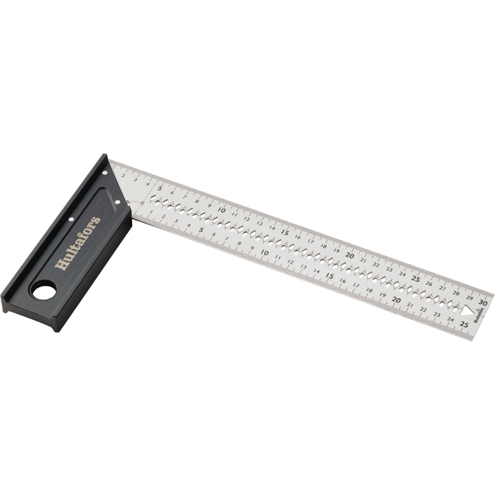 Vinkelhake byggd för både precision och hållbarhet. Utmärkt för bygg-, verkstads- och snickeriarbete. Bladet är 45 mm brewtt för att passa arbete med vanliga regelbredder och en centrumlinje underlättar om du vill sätta ut markeringar för båda sidor av varje regel. Bladet har även märkskåror, med 5 mm mellanrum, som kan användas för att rita eller skära en linje parallellt längs en kant. En unik hopsättningsteknik med kraftiga specialnitar och ett blad av 1,5 mm tjockt, höghållfast rostfritt stål ger en extremt tålig konstruktion som håller länge och tål tuffa arbetsmiljöer.